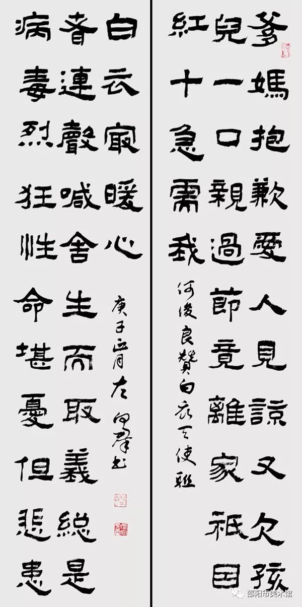 《大(dà)難來(lái)時(shí)新冠去(qù)後聯 》&✔™•nbsp; 曾偉子(zǐ) 書(shū)法