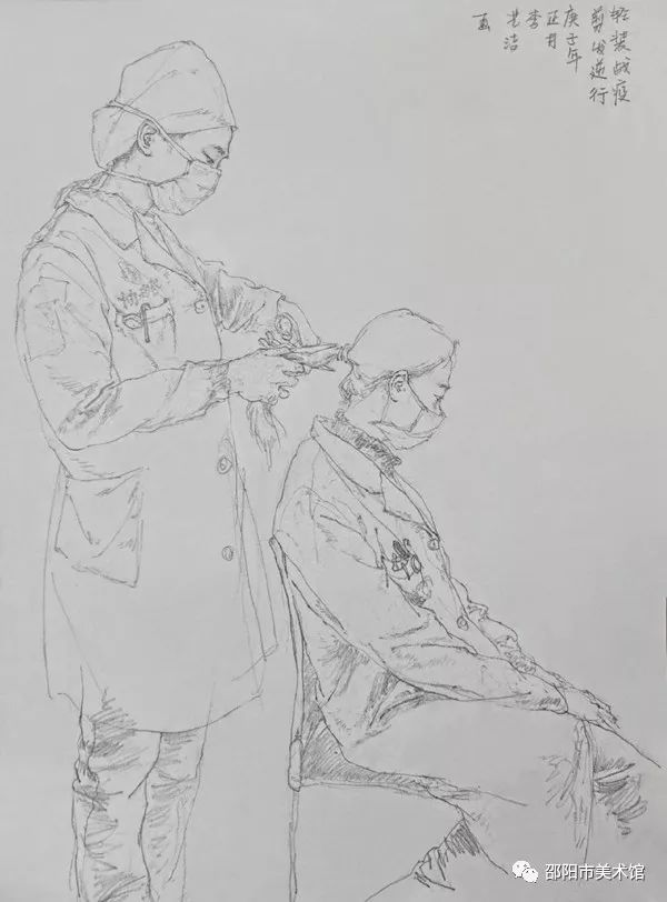 《輕裝戰疫,剪發逆行(xíng)》 李藝±×潔 速寫