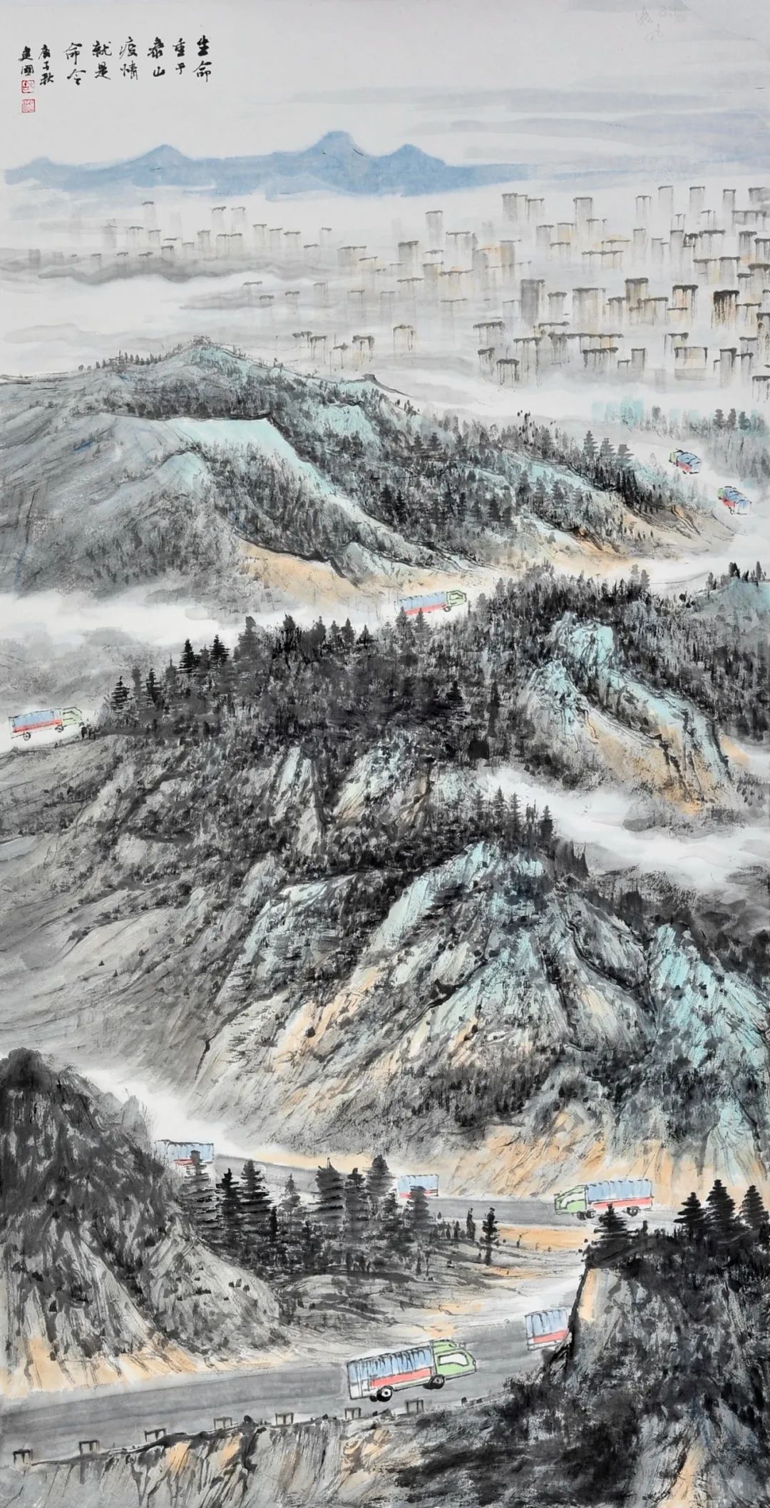 《生(shēng)命重于泰山(shān)》胡建國(g ±uó) 138cm×68cm 國(guó©©® )畫(huà)