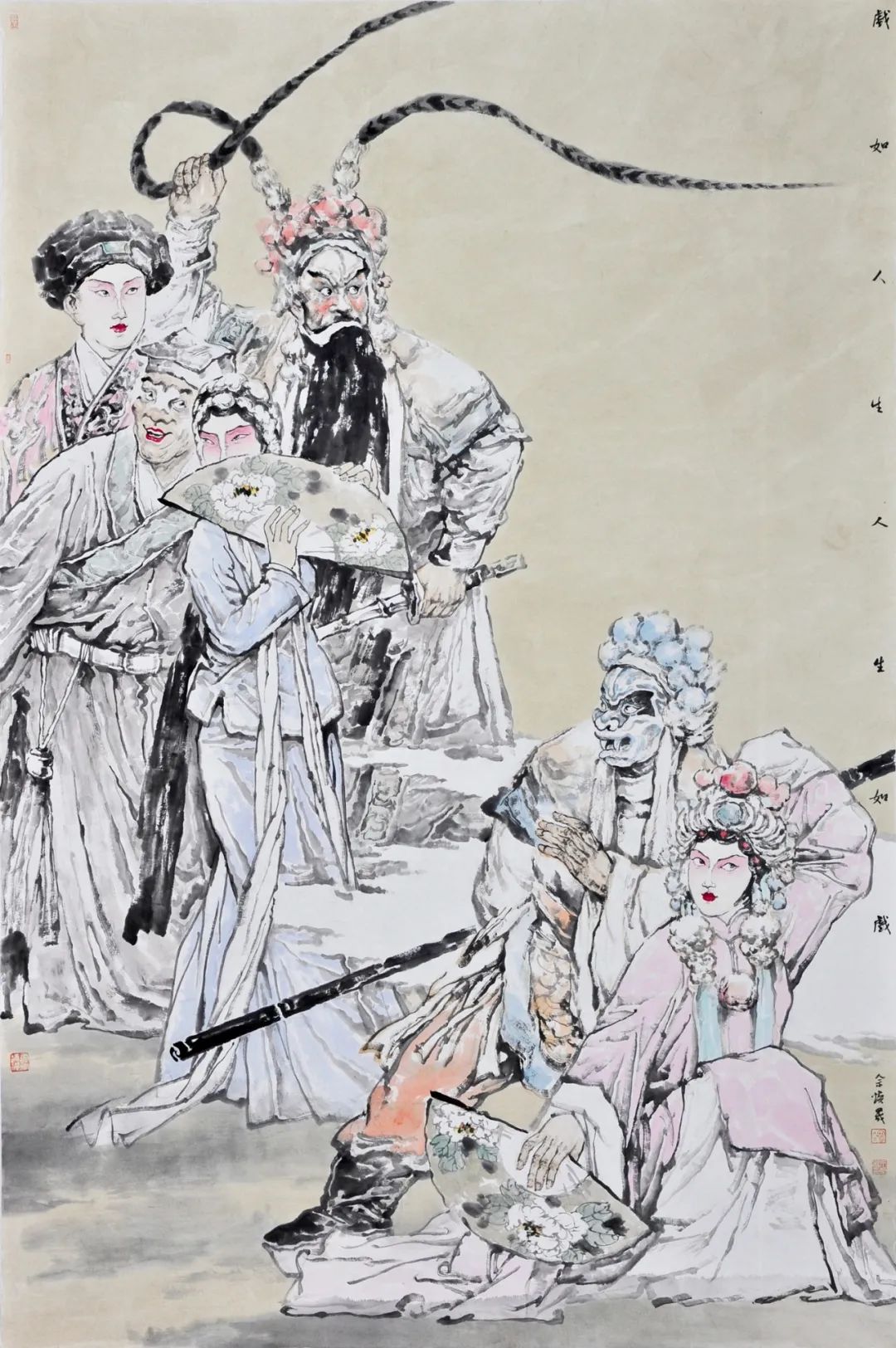 《人(rén)生(shēng)如(rú)戲》佘煥晟 240cm×120c→∞m 國(guó)畫(huà)