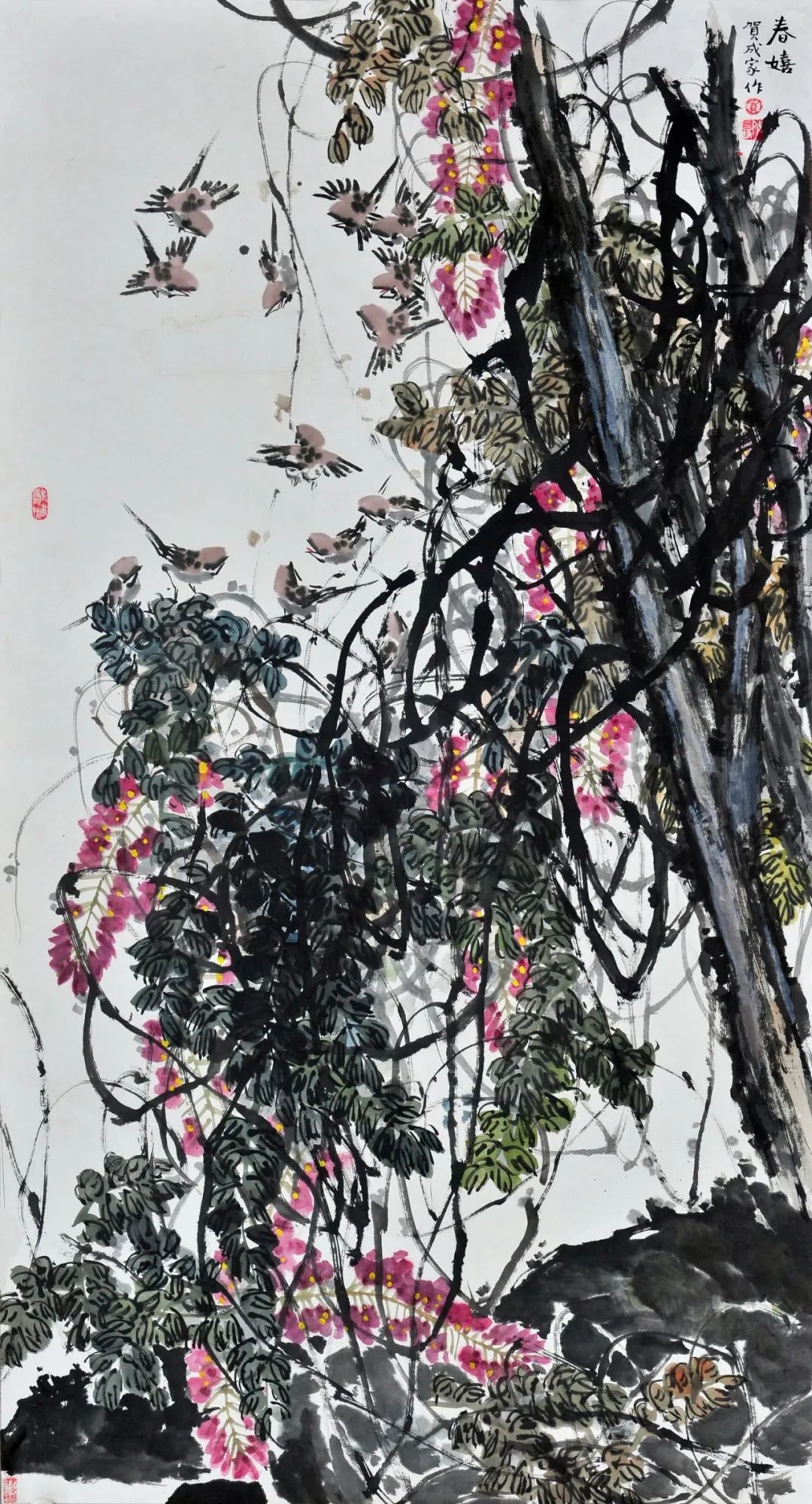 《春嬉》賀成家(jiā)180cm×97cm書(sh↕☆₽ū)法