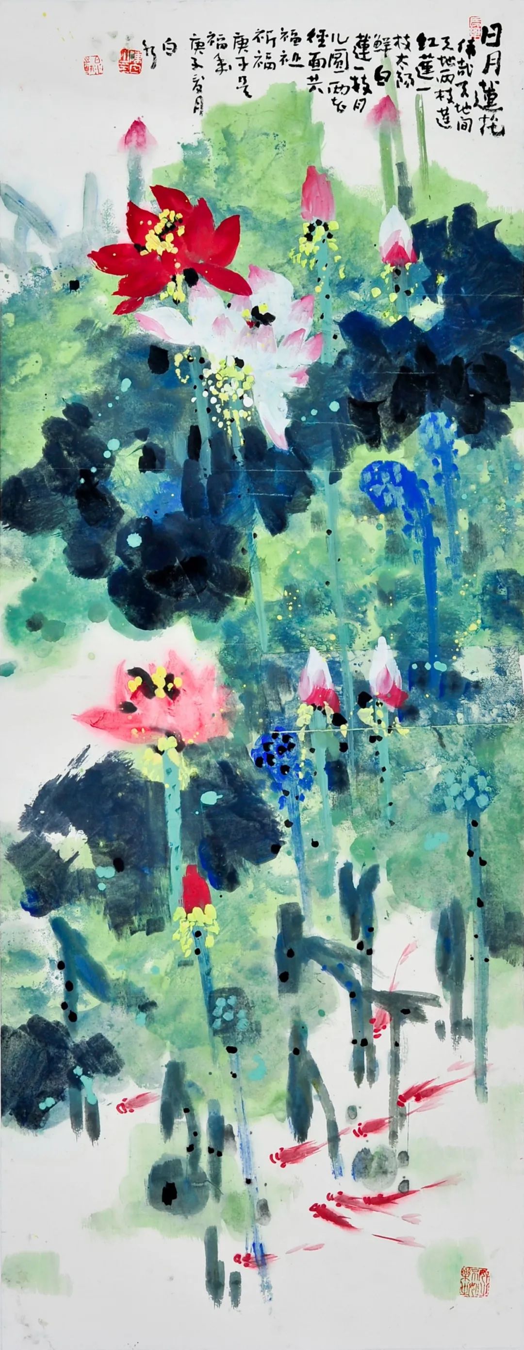 《日(rì)月(yuè)蓮花(huā)》陳白(bái)水(shuǐ)↓ ♣® 136cm×53cm 國(guó)畫(huà)