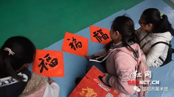 在館內(nèi)一(yī)角,三位小(xiǎo)女(nǚ)生§≠♠¥(shēng)正在晾曬她(tā)們剛剛寫的(de)“福”字。康銀(yín)™₽&娟是(shì)雨(yǔ)溪中學的(de)一(yī)名初中生(shēng),和(∞ €hé)同學聚會(huì)路(lù)過此地(dì)∏π★剛好(hǎo)看(kàn)見(jiàn)可(kě)以免費(fèi)送↓↓♦÷春聯,就(jiù)拉著(zhe)兩位同學>→↔₽一(yī)起進來(lái)了(le),她(tā)說♣±✔♦(shuō),因為(wèi)父親也(yě)是(shì)一(yī)位書( ₽shū)法愛(ài)好(hǎo)者,她(tā)可(kě)¥γβ♥以帶回家(jiā)送給爸(bà)爸(bà),給他(tā)一(yī)個(gè)驚€€喜。其他(tā)兩位女(nǚ)生(shēng)也(yě)表示第一(yī)次參ε 加這(zhè)樣的(de)活動,簡直是(shì)意外(wài)的(δ↔de)收獲,而且很(hěn)有(yǒu)意義。