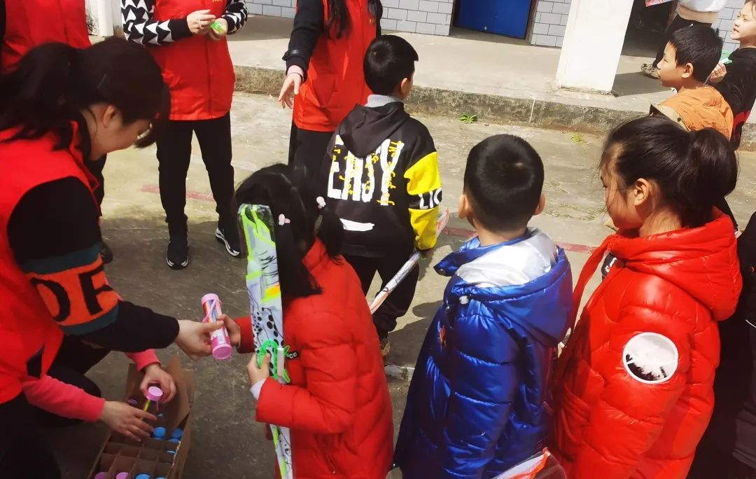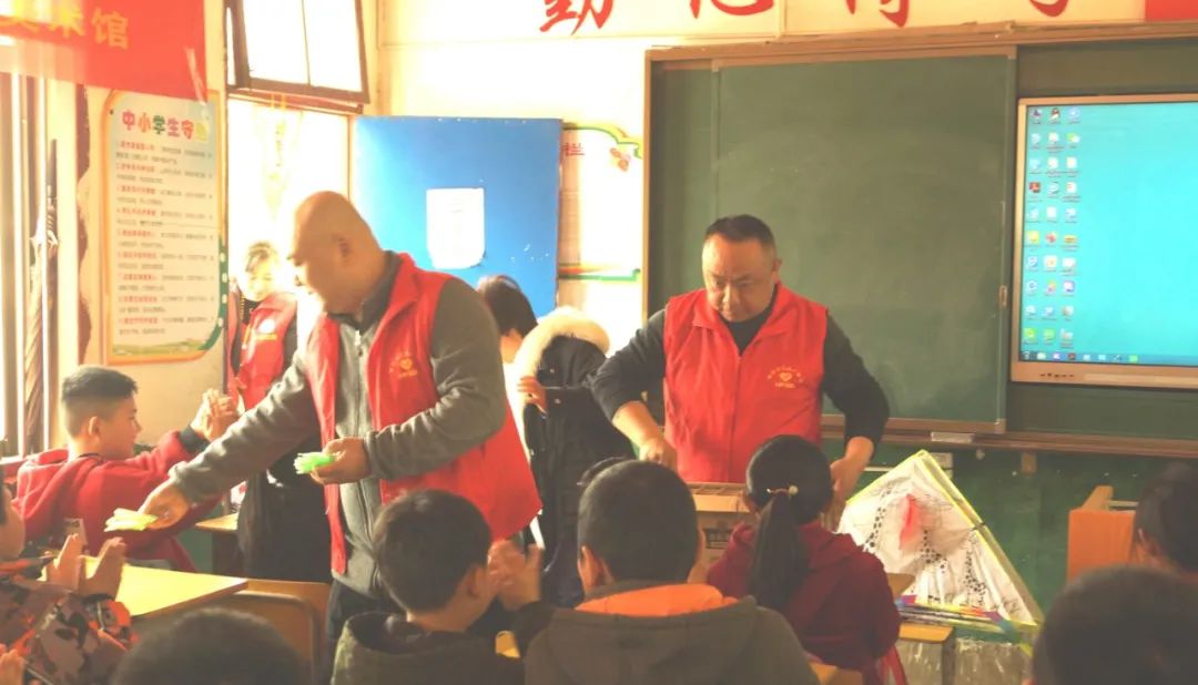 志(zhì)願者老(lǎo)師(shī)們在給孩✔♣₽子(zǐ)們分(fēn)發禮物(wù)