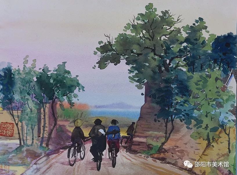 在筆(bǐ®•)墨的(de)運用(yòng)上(shàng®βλ),悉心探索一(yī)種既有(yǒu)版畫(huà)§簡潔明(míng)快(kuài),又(yòu)有(yǒu)水(shuǐ)彩酣暢π©↓↑淋漓的(de)畫(huà)法,博采兼施,不(bù)拘一(yī)格。主張面σ 向生(shēng)活,師(shī)法自(zì)然。把山(shān)水(shu¥σ§ǐ)的(de)自(zì)然之性、內(nèi)₩±涵之神貫通(tōng)于筆(bǐ)端,融合于情思,形成了(le)自(zì)'"己獨特的(de)風(fēng)格。